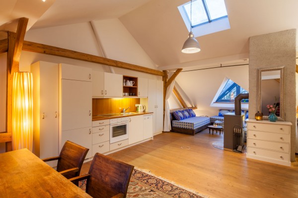 Das Loft befindet sich im 3. Stock unseres wunderschönen, im Jahre 1910 gebauten Altstadt-Hauses (kein Lift). Es bietet einen großräumigen Wohn-, Koch- und Essbereich mit voll ausgestatteter Küche, 1x Schlafzimmer mit King-Size Doppelbett (180x200cm) und einen weiteren Schlafraum mit max. 3x Schlafsofas (90x200cm; durch Vorhänge vom Wohnraum getrennt mit Klimaanlage). Wohnen Sie über den Dächern von Salzburg und genießen Sie die tolle Aussicht über die Salzburger Altstadt.